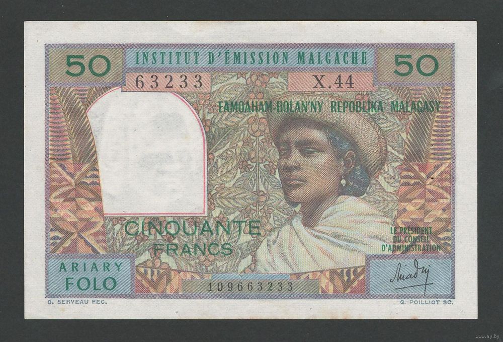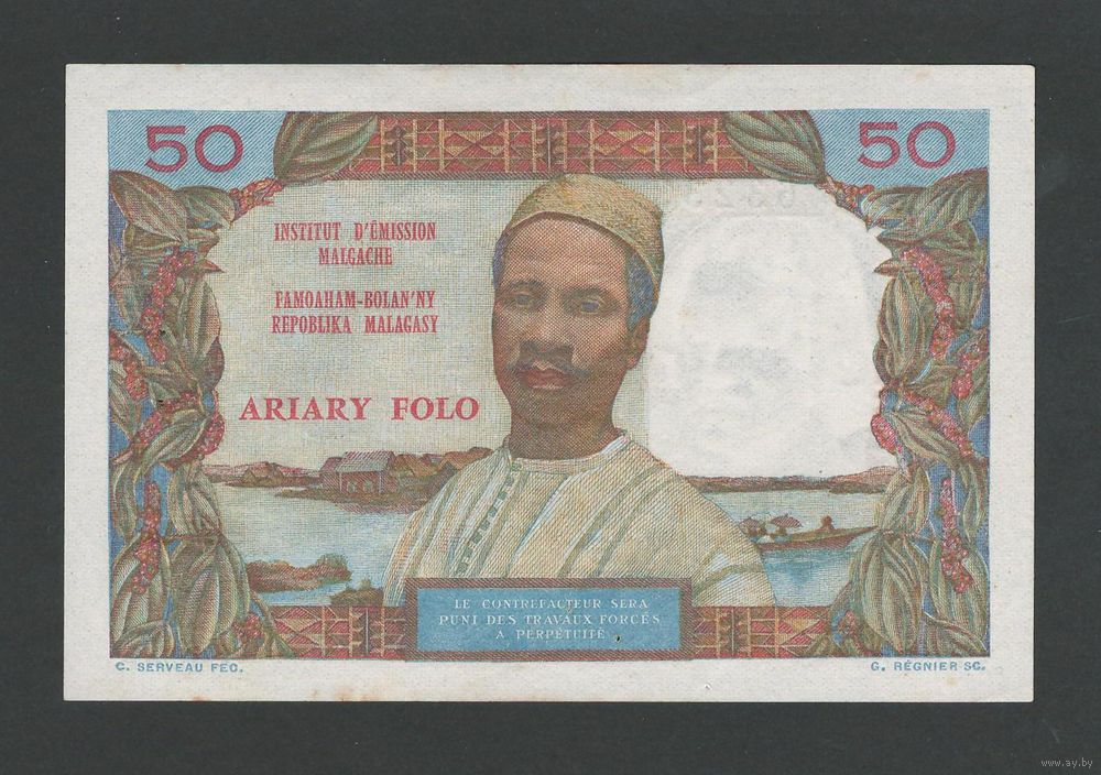 Мадагаскар 50 франков 1969 года. Тип Р-61(1). Состояние aUNC