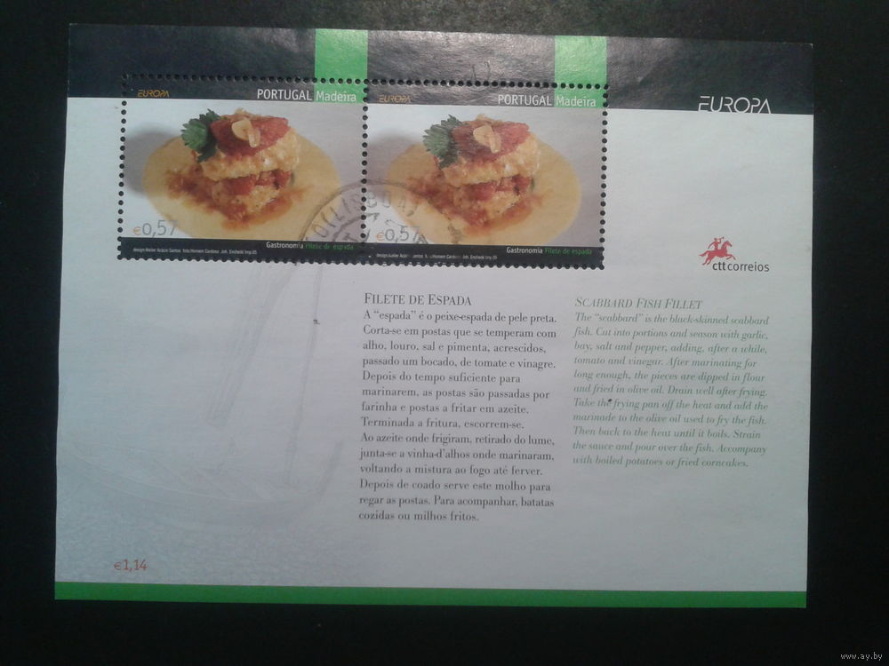 Мадейра, Португалия, 2005. Европа. Гастрономия, блок. Mi-12,0 евро гаш.