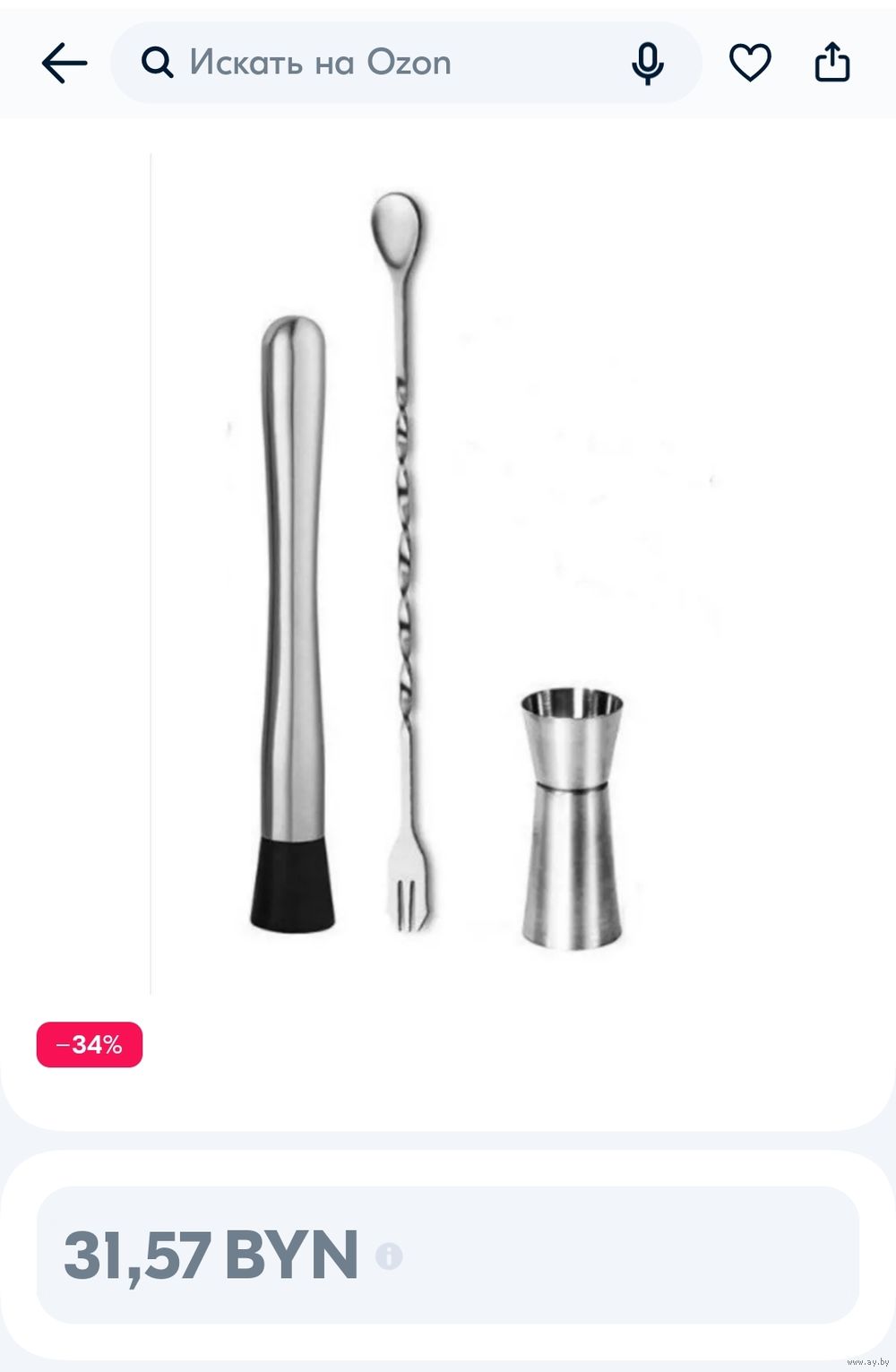 Набор Мадлер (15) + Мерная ложка (7) + Джиггер (5) = 25 белорусских рублей