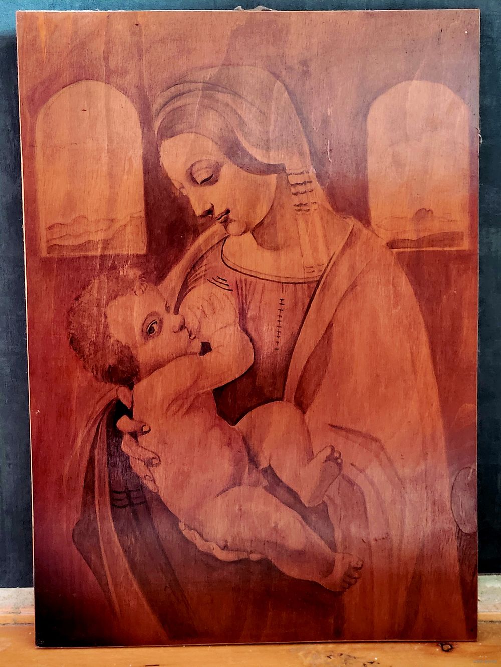 Образ Мадонны Литта, вариация на тему картины Леонардо да Винчи в технике гризайль.