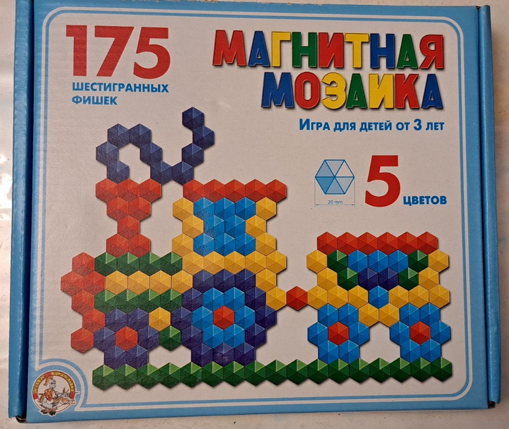 Магнитная мозайка, новая, 175 элементов, 5 цветов, Россия, шестигранные фишки.