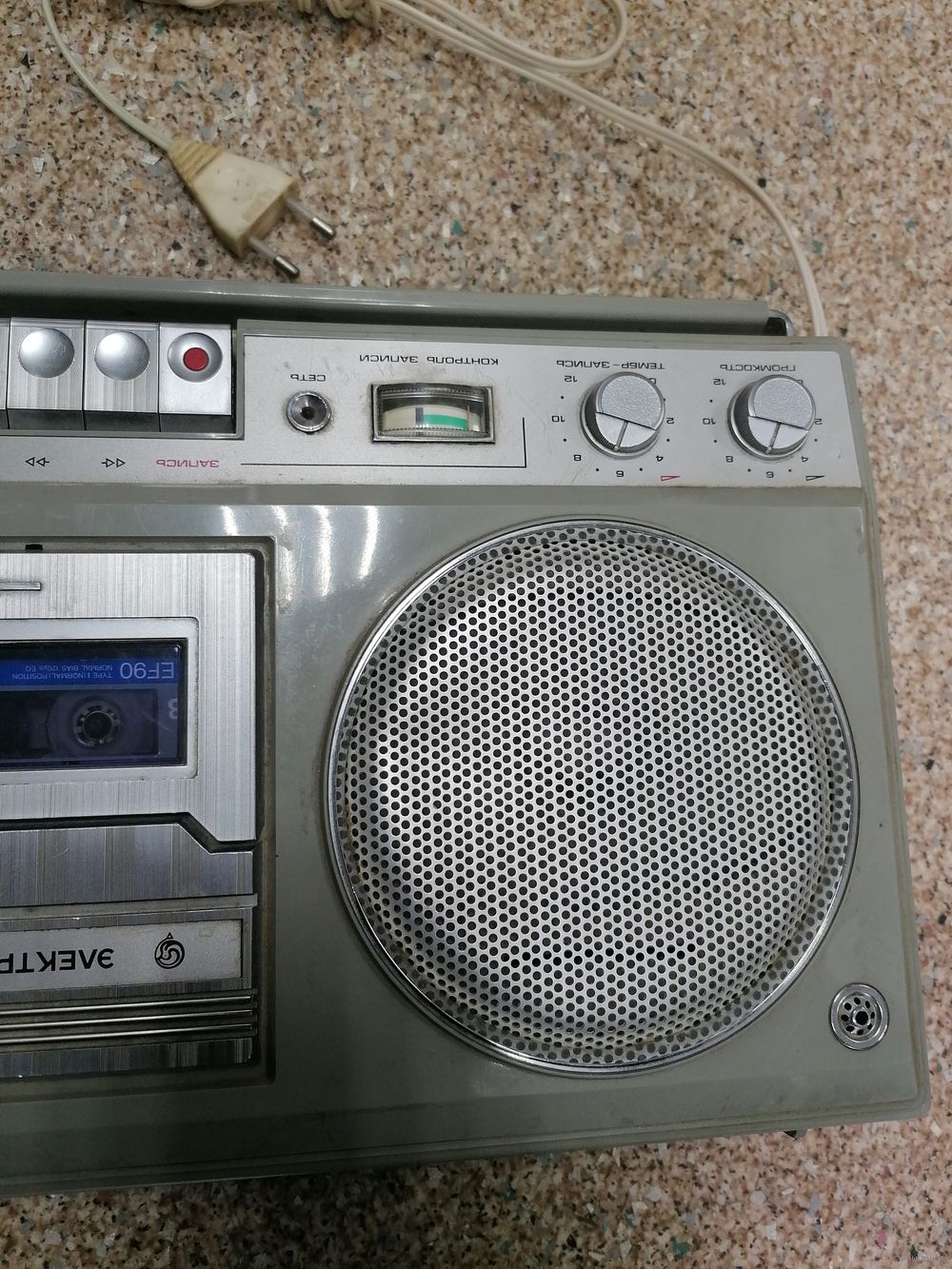 Внешнее состояние на фото. В сеть включается, но не крутит кассету. Вроде как оборван пасик. В ремонт.