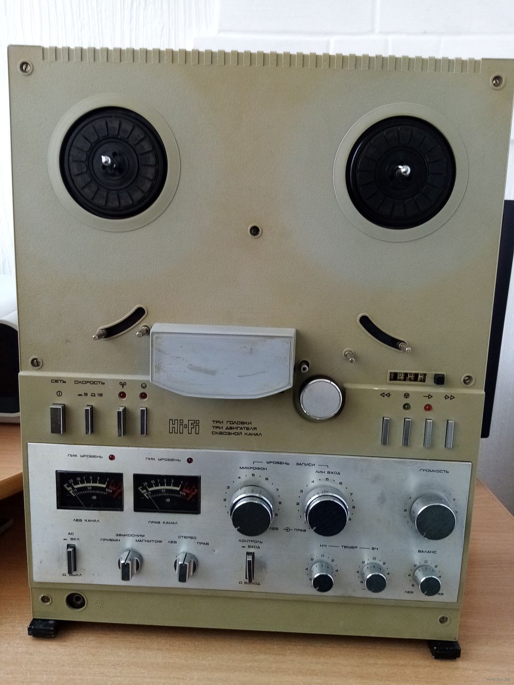 Магнитофон Союз-110 .Без боковых панелей и задней крышки.Не родные замки подкатушечника-18 см катушки держат надежно....Целиком на донора или восстановление.Головы нормальные.Проблема с одним показанием индикатора(стрелка уходит вправо)...Сетевой шнур в наличии.....Рабочий.Видео работы могу скинуть..КАТУШКИ НЕ ПРОДАЮТСЯ...Мелкие конденсаторы заменены на новые(электролиты)...Продается по заниженной цене комплектующих...Без почты.