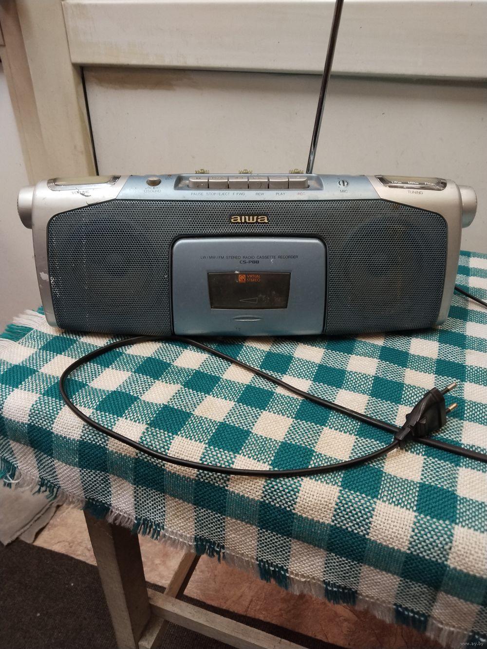 Магнитола Aiwa радио fm что то ловит,кассета играет. Требует косметического ухода.