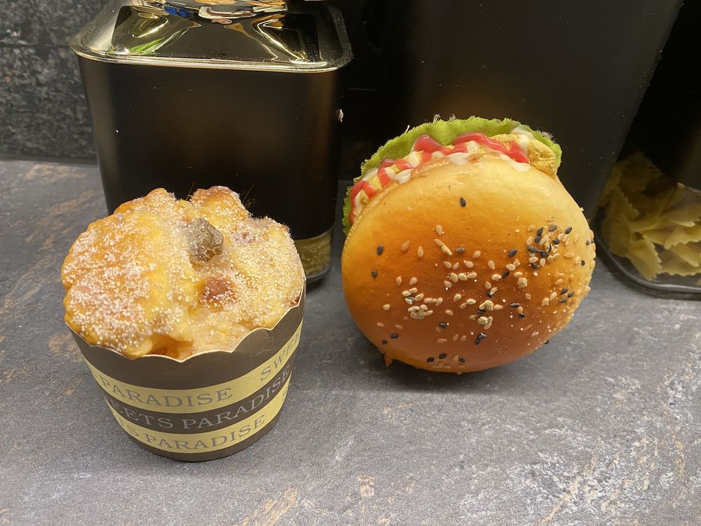 Магниты на холодильник, реалистичные, бургер и кекс, размер 9х4,5 см, цена указана за 1 шт.