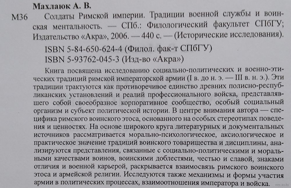 Махлаюк А.В. Солдаты Римской империи. Традиции военной службы и воинская ментальность. Серия: Исторические исследования М. СПбГУ, Акра 2006г. 440с. Твердый переплет, Увеличенный формат.