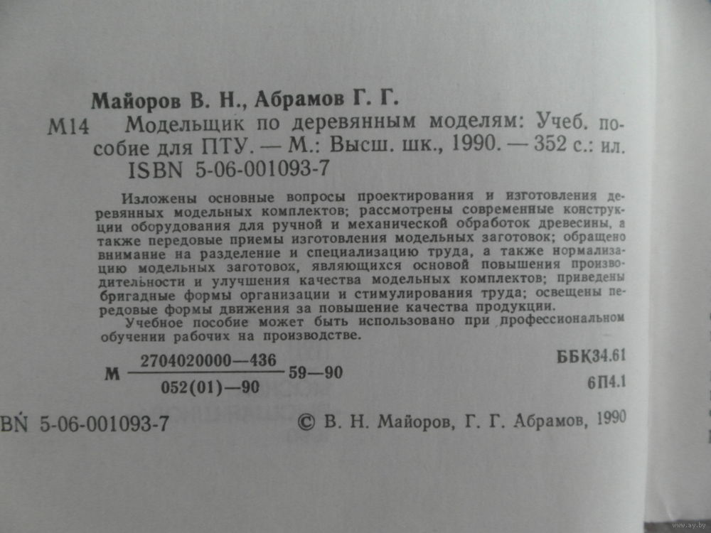 Майоров В.Н., Абрамов Г.Г. Модельщик по деревянным моделям. М. Изд-во Высшая школа. 1990г.