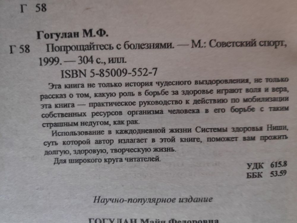 Эта книга не только история чудесного выздоровления, не только рассказ о том, какую роль в борьбе за здоровье играют воля и вера, эта книга -- практическое руководство к действию по мобилизации собственных ресурсов организма человека в его борьбе с таким страшным недугом, как рак.Использование в каждодневной жизни Системы здоровья Ниши, суть которой автор излагает в этой книге, поможет вам прожить долгую, здоровую, творческую жизнь.Для широкого круга читателей.