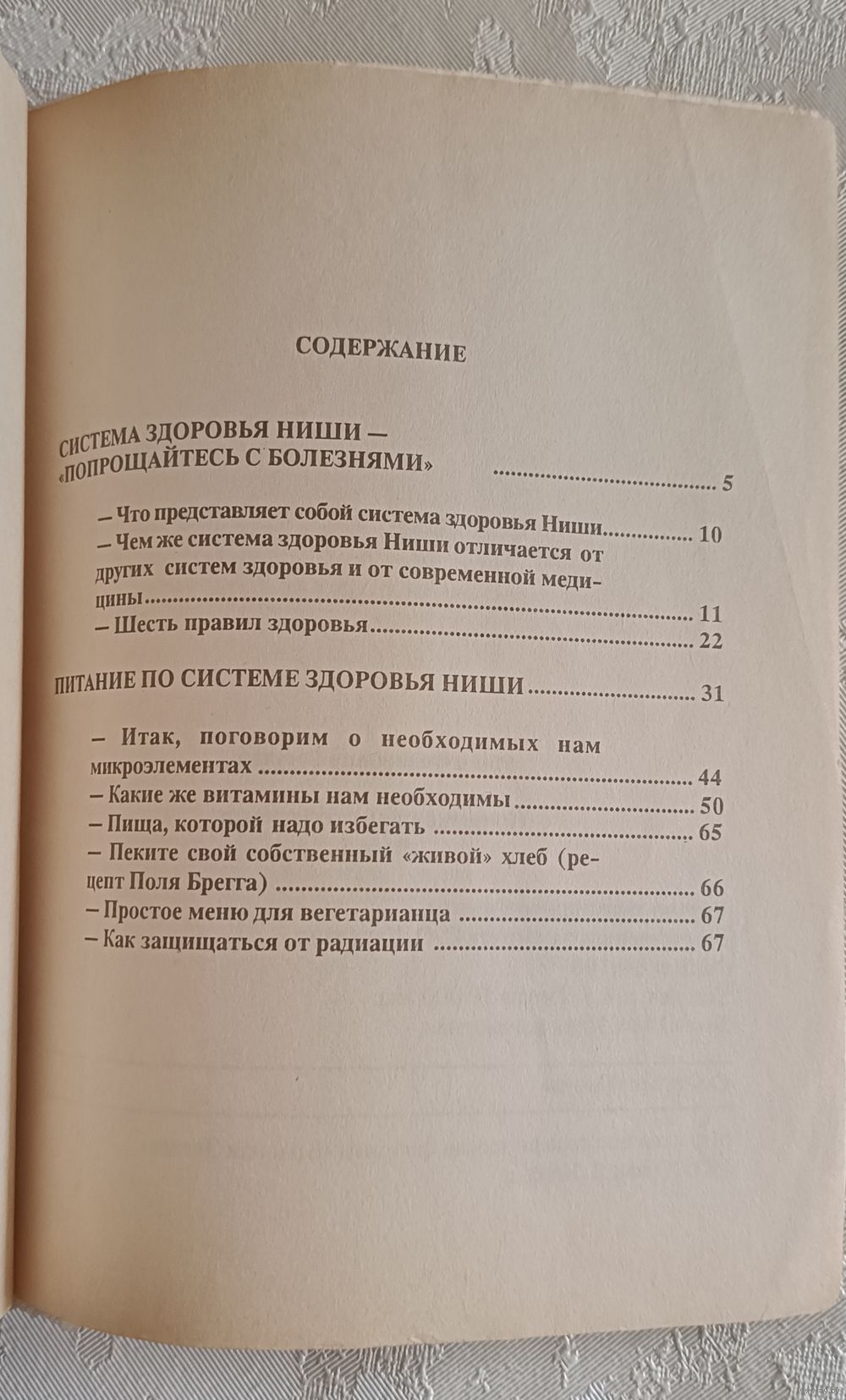 Книга содержит описание упражнений Ниши, советы по питанию, рецепты лечения некоторых заболеваний, а также рекомендации по поддержанию психического здоровья и правильного настроя.