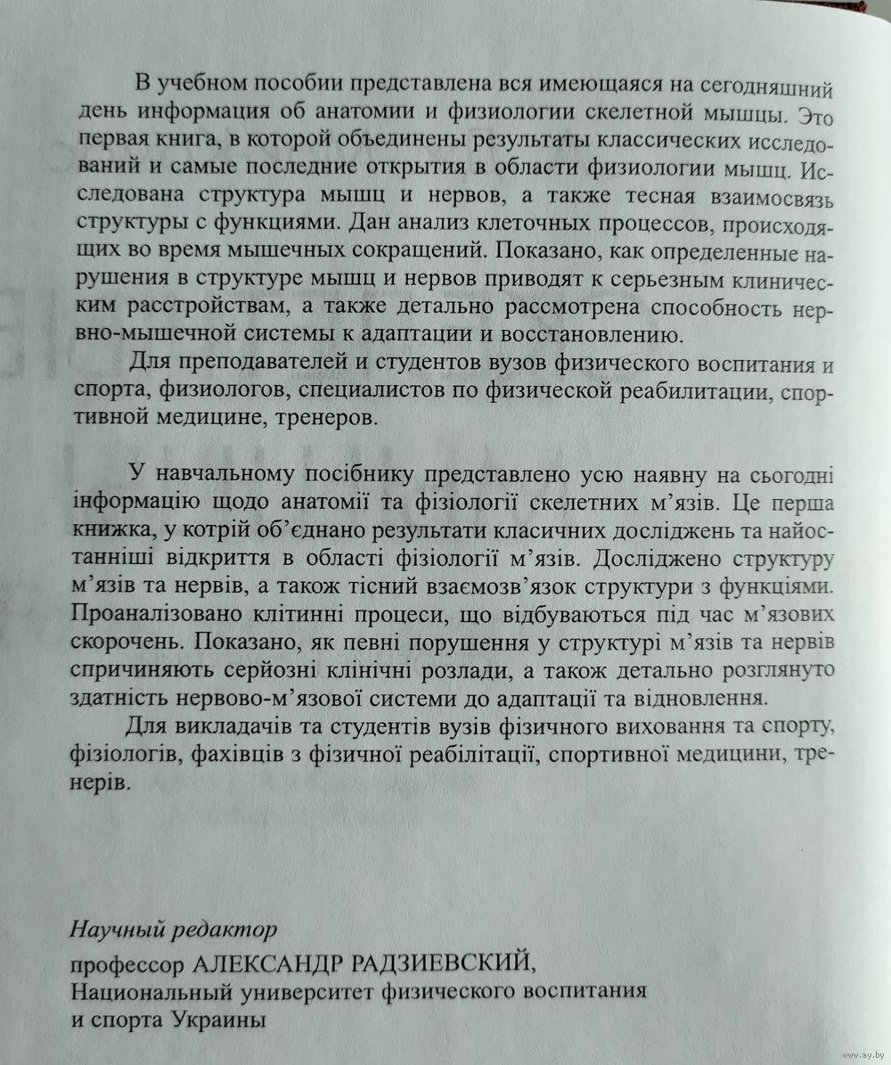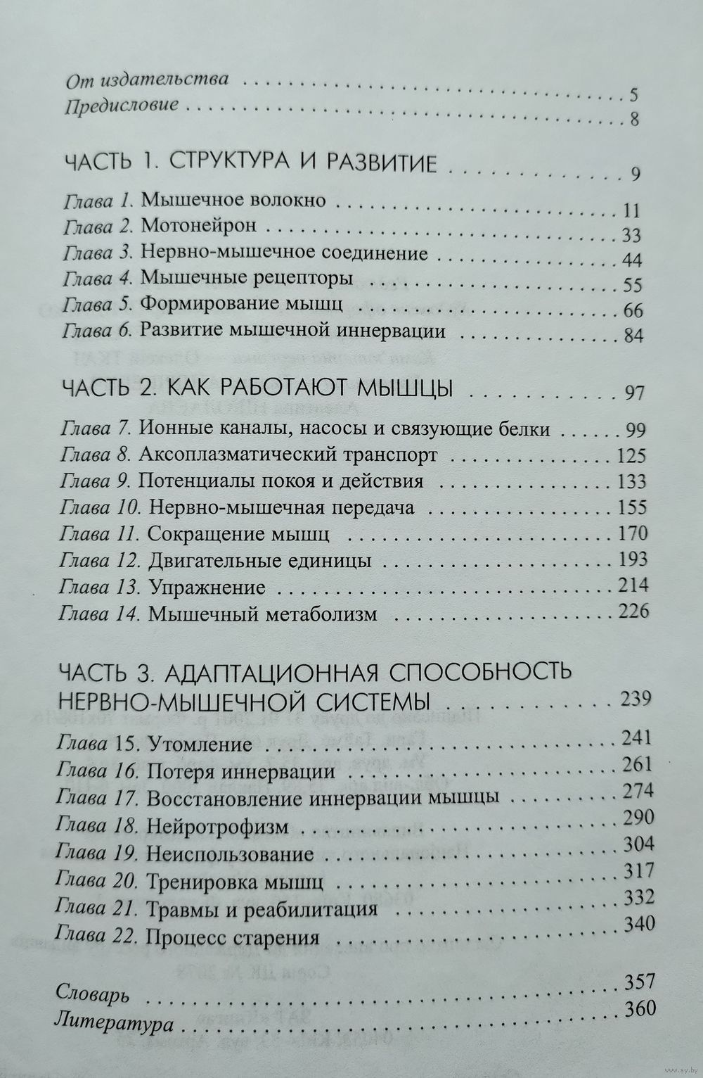В учебном пособии представлена вся имеющаяся на сегодняшний день информация об анатомии и физиологии скелетной мышцы. Это первая книга, в которой объединены результаты классических исследований и самые последние открытия в области физиологии мышц. Исследована структура мышц и нервов, а также тесная взаимосвязь структуры с функциями. Дан анализ клеточных процессов, происходящих во время мышечных сокращений. Показано, как определенные нарушения в структуре мышц и нервов приводят к серьезным клиническим расстройствам, а также детально рассмотрена способность нервно-мышечной системы к адаптации и восстановлению.