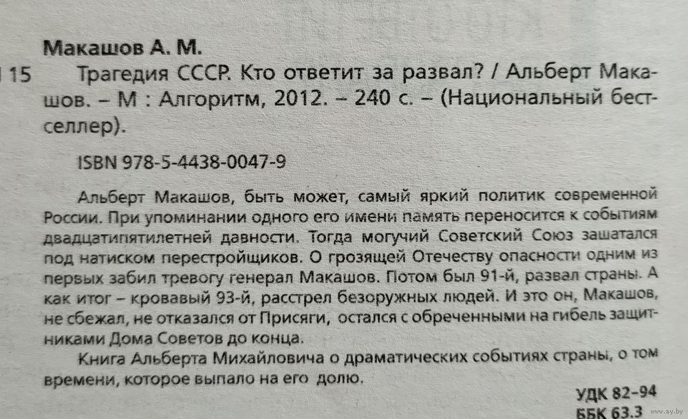 Макашов Альберт. Трагедия СССР. Кто ответит за развал?