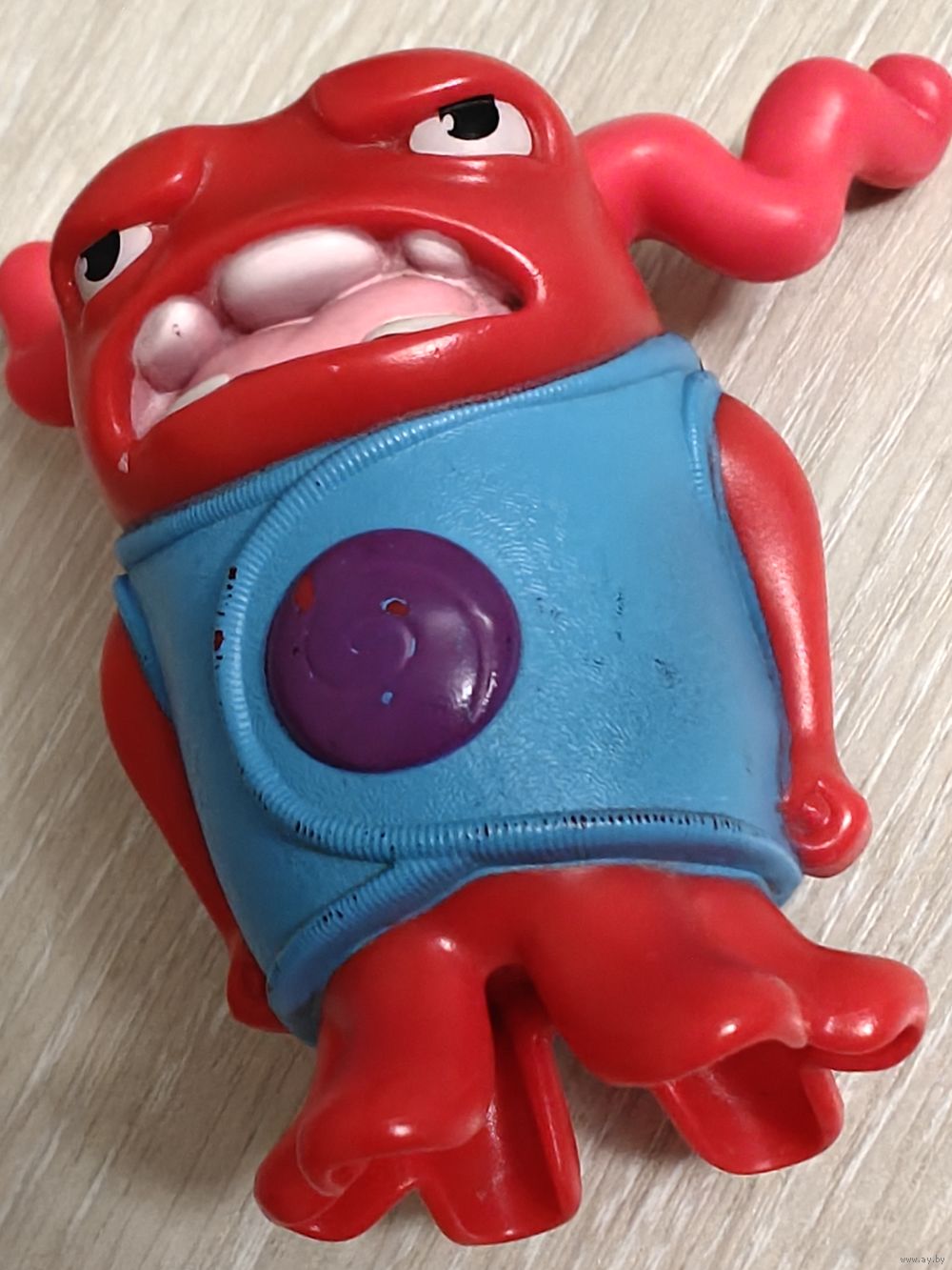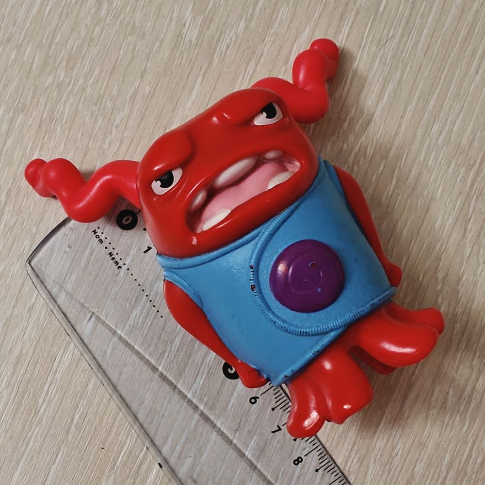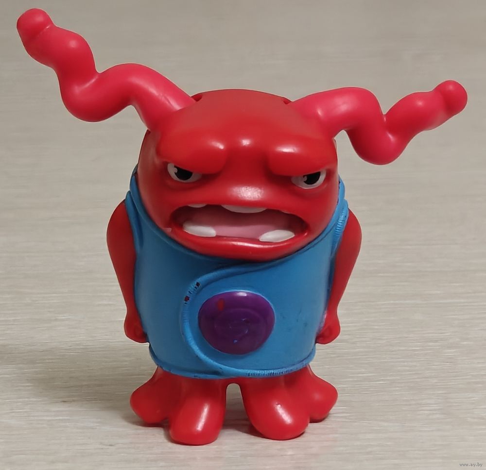 Персонаж анимационного сериала "Home"/"Дом" - "Трясущийся О"/ "Shaking Oh"(один из бувов , бувы -инопланетная вымышленная расса). 2015г. Механическая игрушка,имеет функцию заводного механизма,при срабатывании которого, персонаж трясется (все работает). Высота -ок 7,5см.