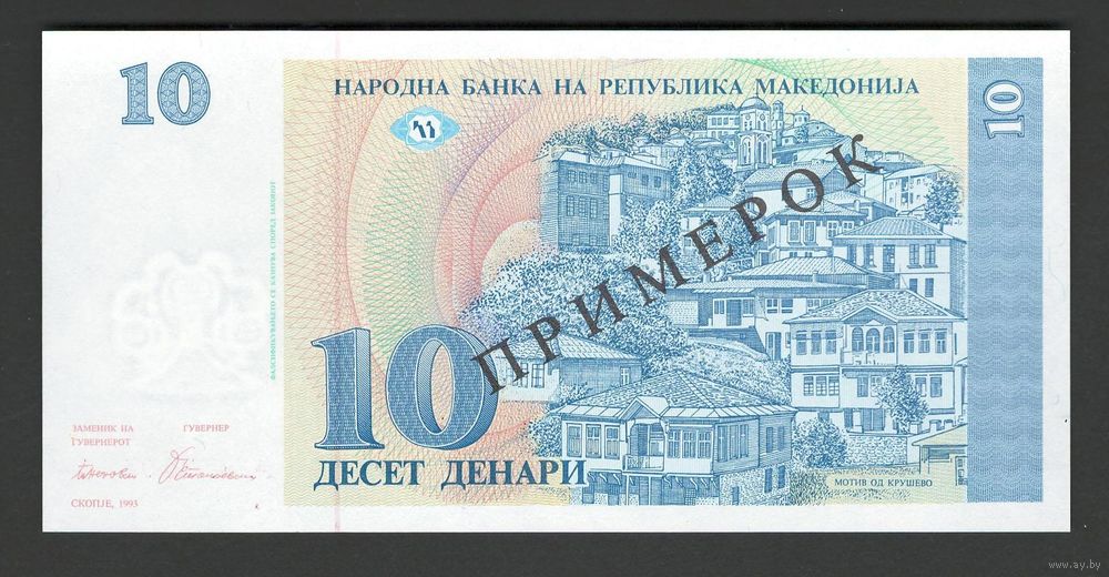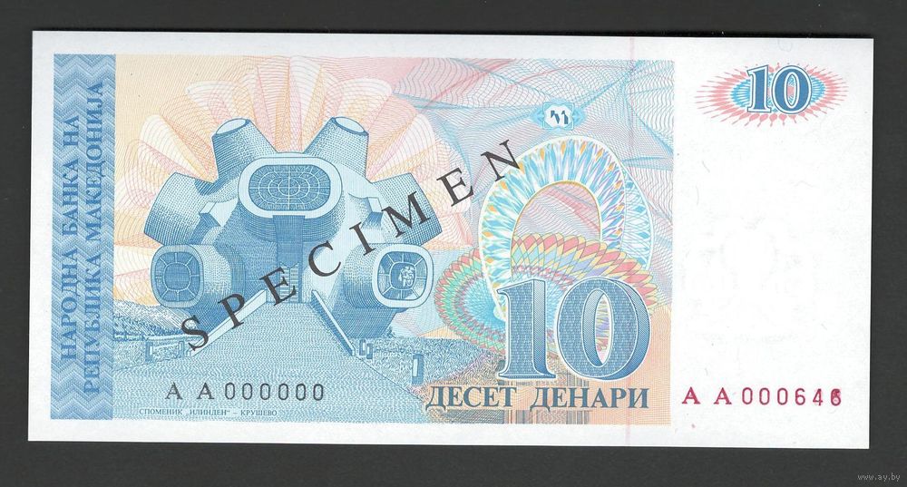 Македония 10 денар 1993 года. Specimen. Тип P-9s. Состояние UNC