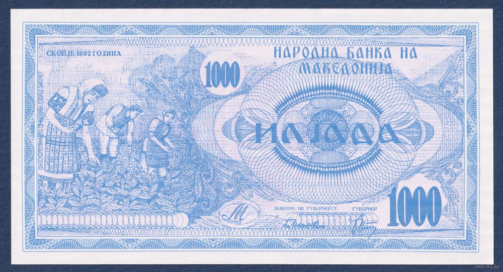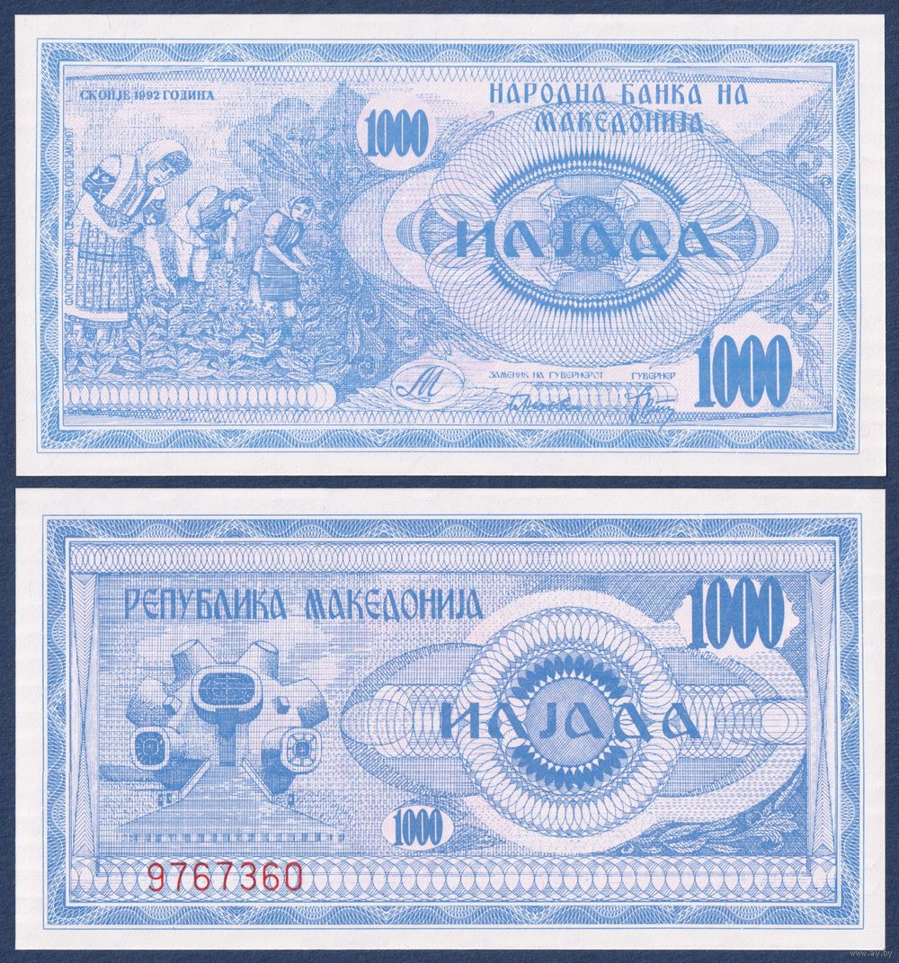 Македония, 1000 денаров 1992 г, P-6 (сбор урожая табака), UNC
