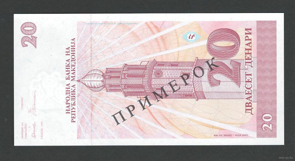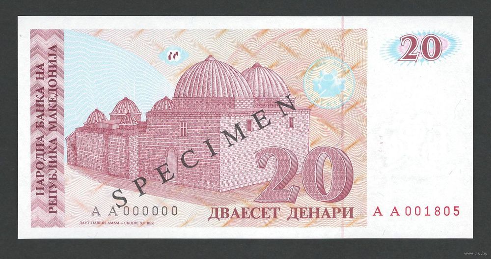 Македония 20 денар 1993 года. Specimen. Тип P-10s. Состояние UNC