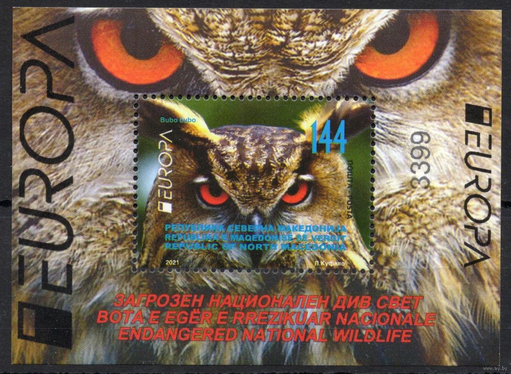 Македония 2021. EUROPA. Фауна птицы филин блок (952)