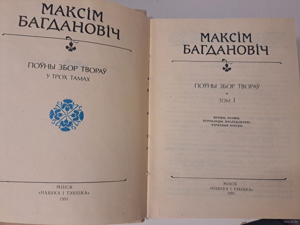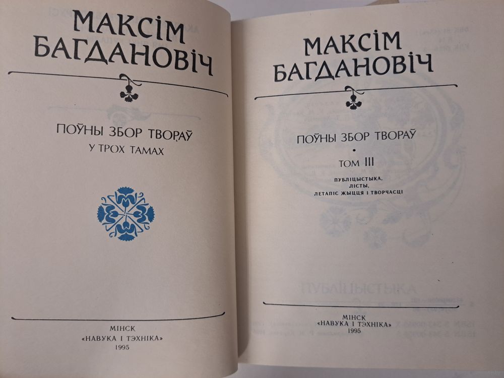 Максім Багдановіч Поўны збор твораў у 3-х трох тамах. 1991,1993,1995 гг.