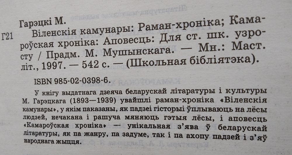 Максім Гарэцкі. Віленскія камунары. Камароўская хроніка. Серыя: Школьная бібліятэка. Мінск. Мастацкая літаратура. 1997 г. 542 с. Цверды пераплет.