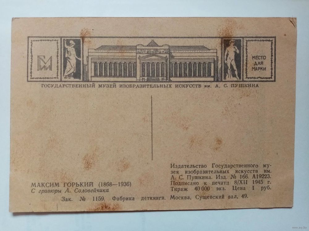 Максим Горький. 1945 г Фабрика деткниги С гравюры Соловейчика чистая