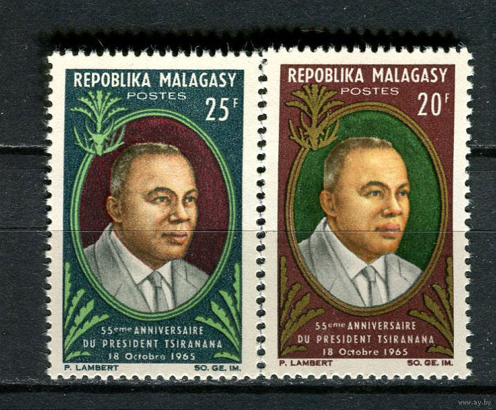 Малагасийская республика - 1965 - 55-летие президента Филибера Циранана - [Mi. 538-539] - полная серия - 2 марки. MNH. (Лот 49JA)-TG3P53