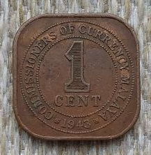 Малайзия 1 цент 1943 года. Георгий VI. Предложи свою цену или обмен!
