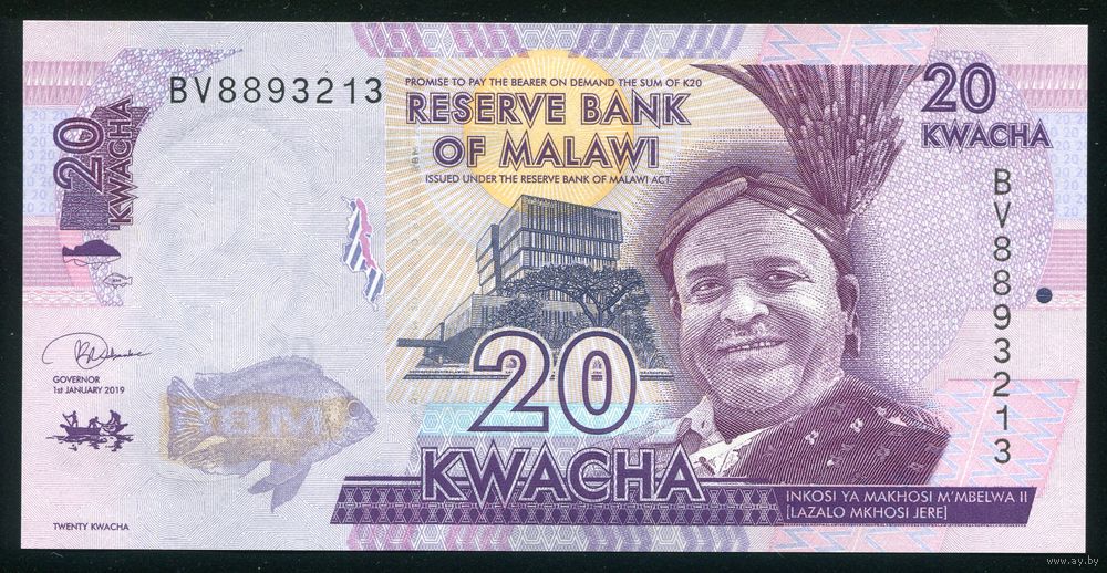 Малави 20 квача 2019 г. P63e. Серия BV. UNC