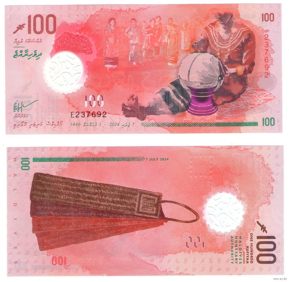 Мальдивы 100 руфий 2024 год UNC (полимер)