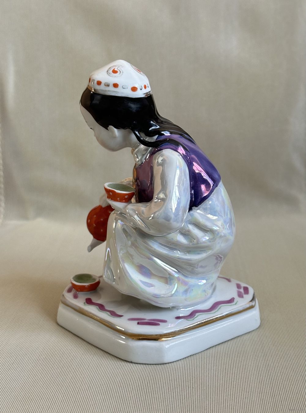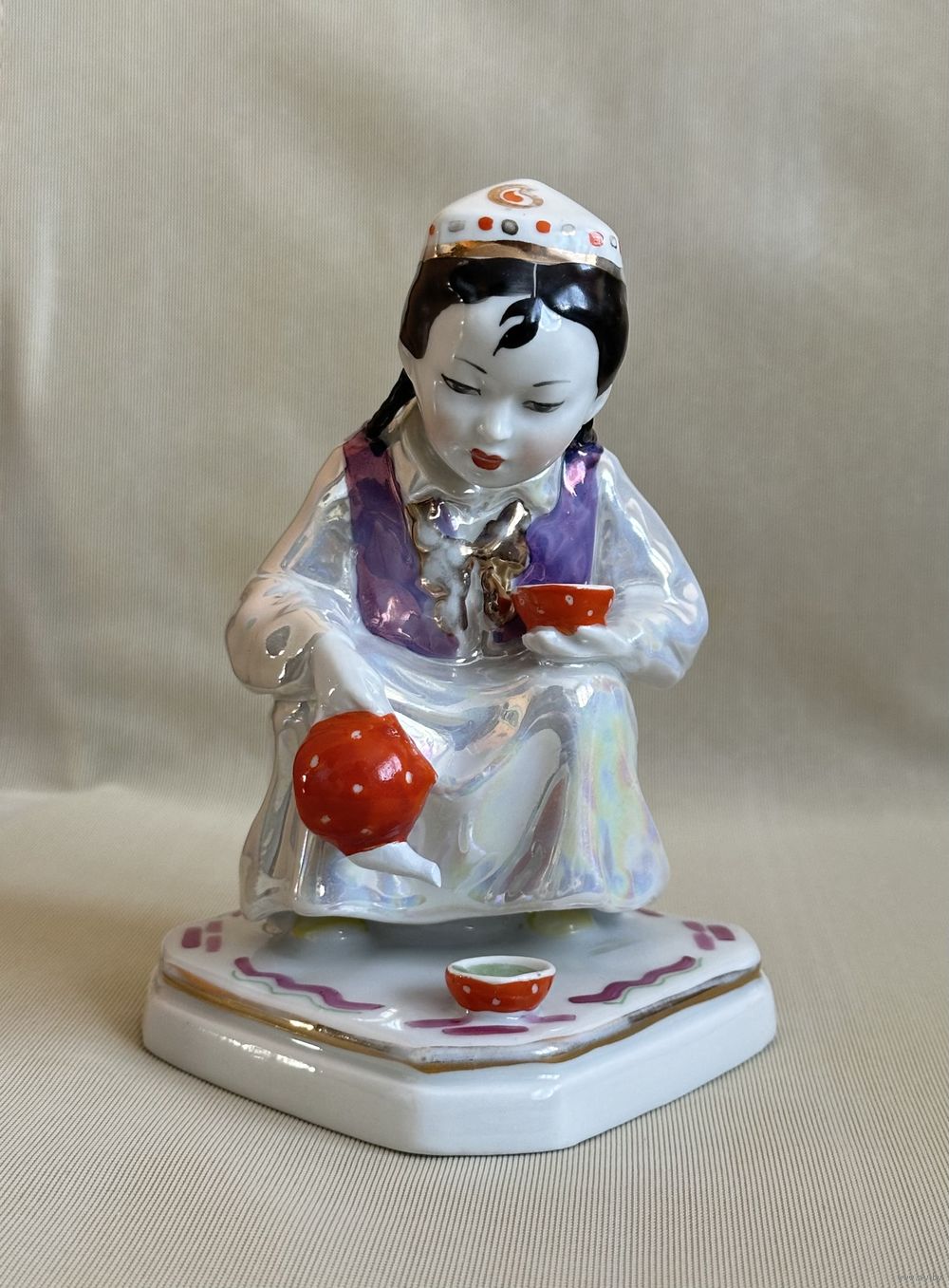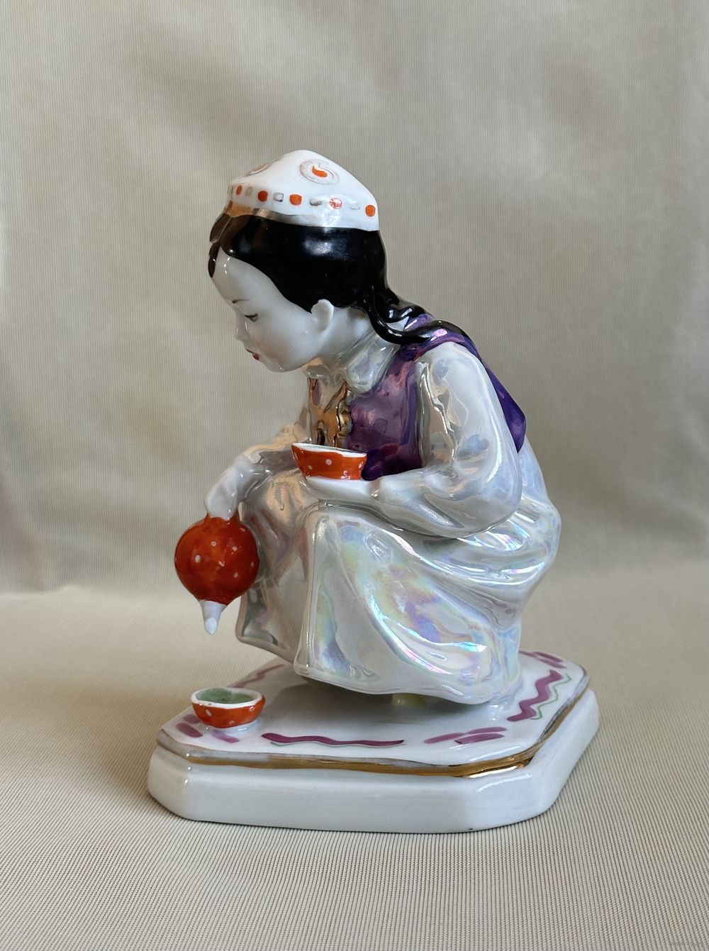 Высота 15 см. Без сколов, трещин. Носик чайника реставрирован. Личных встреч нет. Белпочта.
