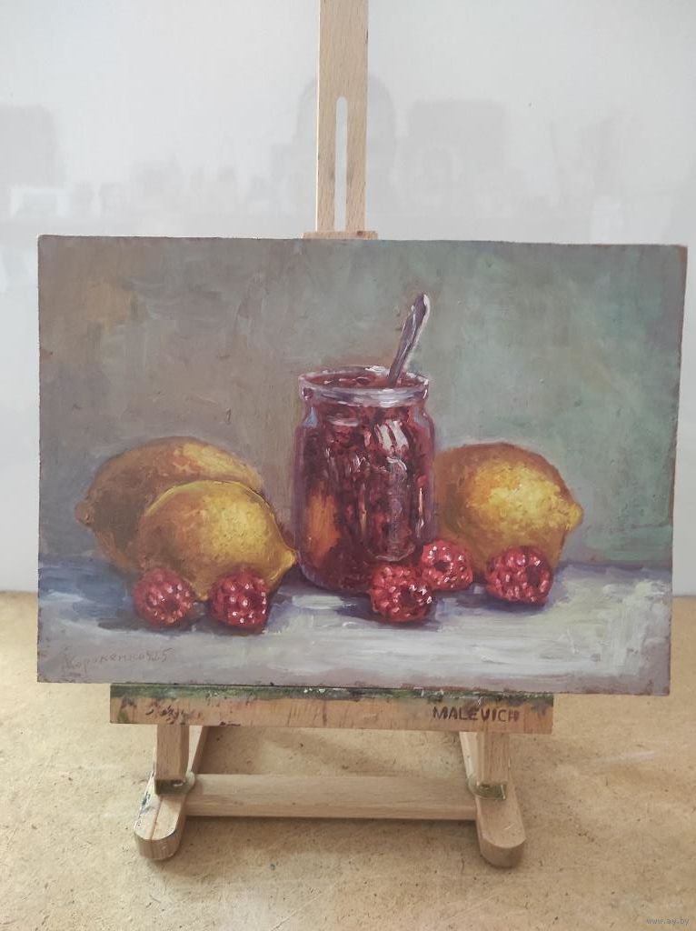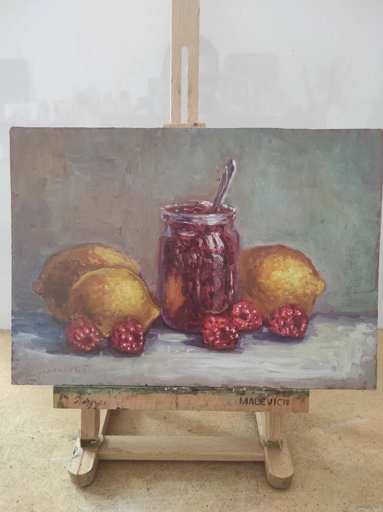 Картина "Малиновое варенье" двп, масло, размер 21х30см.