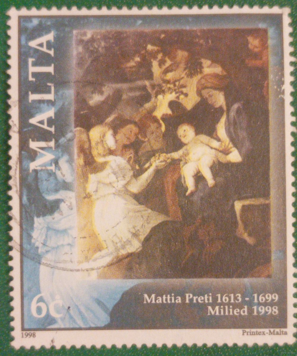 Мальта 1998. Картина Маттиа Прети под названием Отдых на пути в Египет