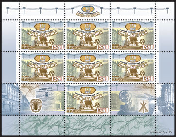 Малые листы "150 лет первой телеграфной линии Минск - Бобруйск (7м + 2купона)"