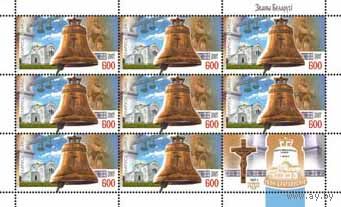 Малые листы "Колокол-благовестник. 1937 (8м+купон)", "Колокол-благовестник. ХIХ В. (8м+купон)", "Подзвонный колокол (8м+купон)"