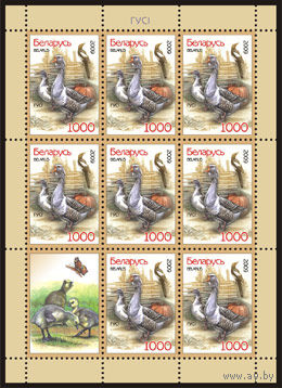 Малые листы "Утки (8м + купон)", "Гуси (8м + купон)"