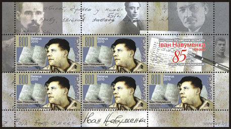 Малый лист "Народный писатель Беларуси Иван Науменко (5м + купон)"
