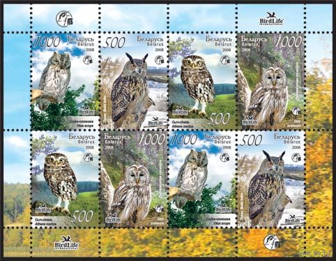 Малый лист "Совы Беларуси" 8 марок (2 серии)