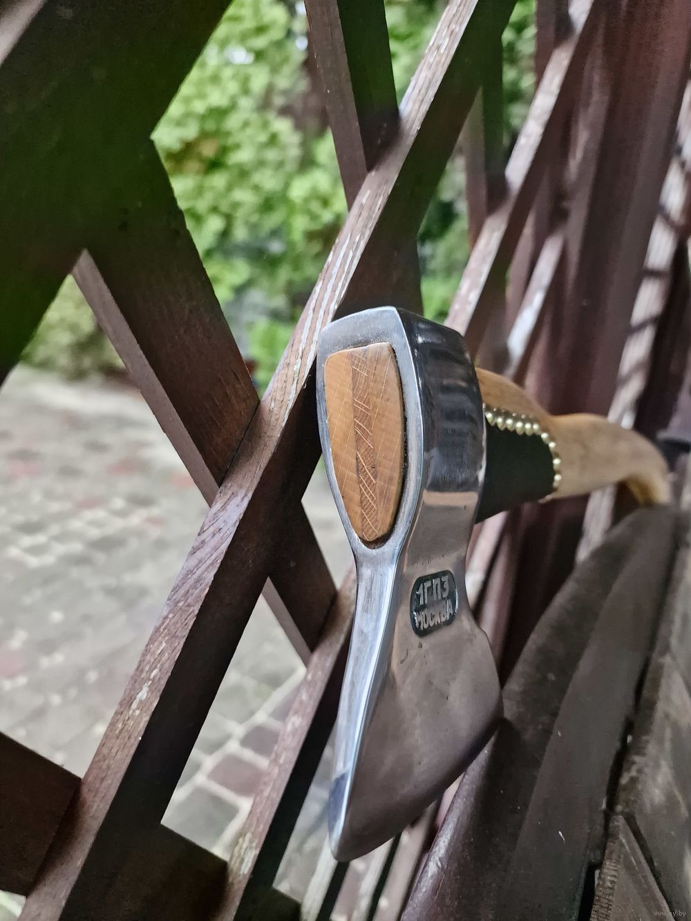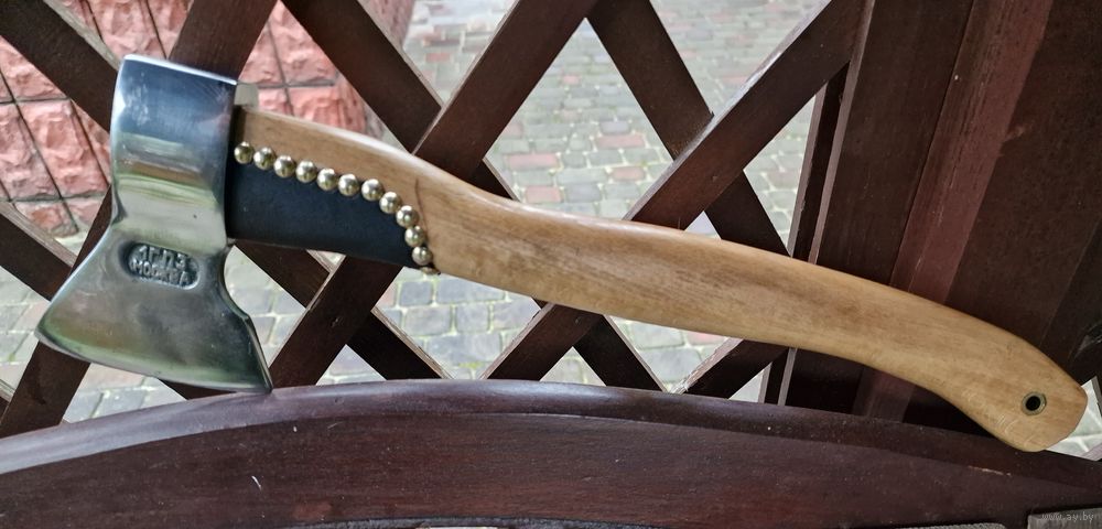 Малый туристический топорик 1 ГПЗ. МОСКВА, длина топорища 43см,(твердая порода дерева,пропитано маслом),высота 13см, вес 775 гр. сталь У7 , ширина лезвия 10см.Топор насажен при помощи 1клина и эпоксидной смолы.