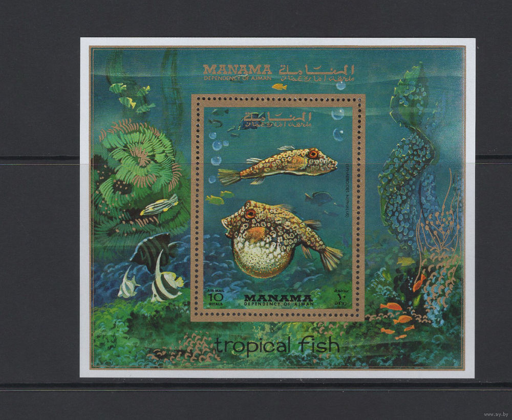 Манама 1971** Морская Фауна Тропические Рыбы Блок зуб