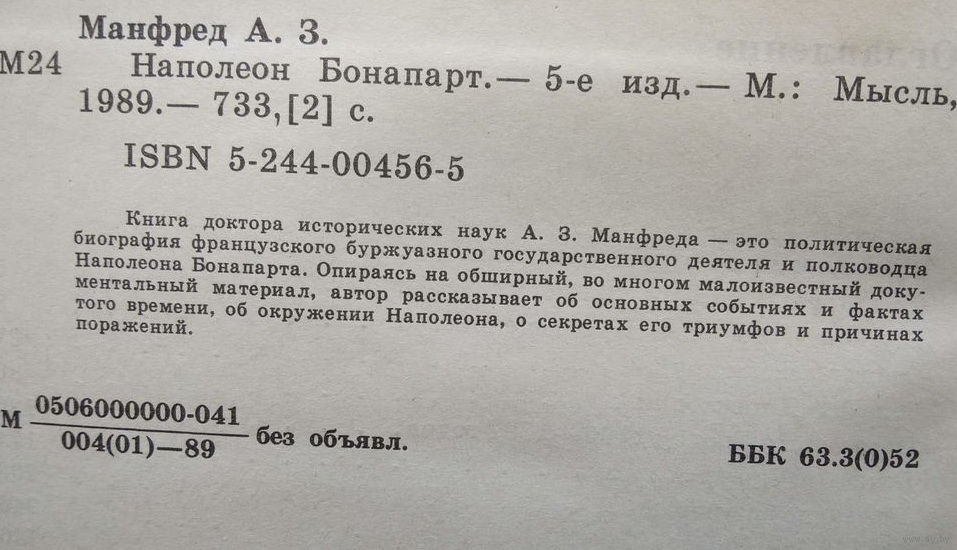 Книга доктора исторических наук А.З.Манфреда - это политическая биография французского буржуазного государственного деятеля и полководца Наполеона Бонапарта. Опираясь на обширный, во многом малоизвестный документальный материал, автор рассказывает об основных событиях и фактах того времени, об окружении Наполеона, о секретах его триумфа и причинах поражений.