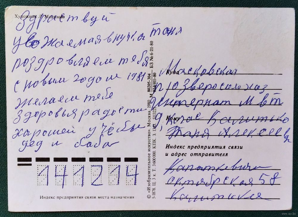 Манилова Л. С Новым годом! 1980 г. ПК прошла почту.