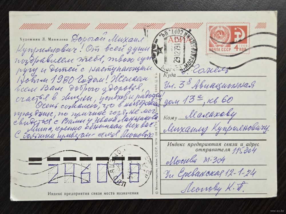 Манилова С Новым годом 1979 подписанная открытка СССР