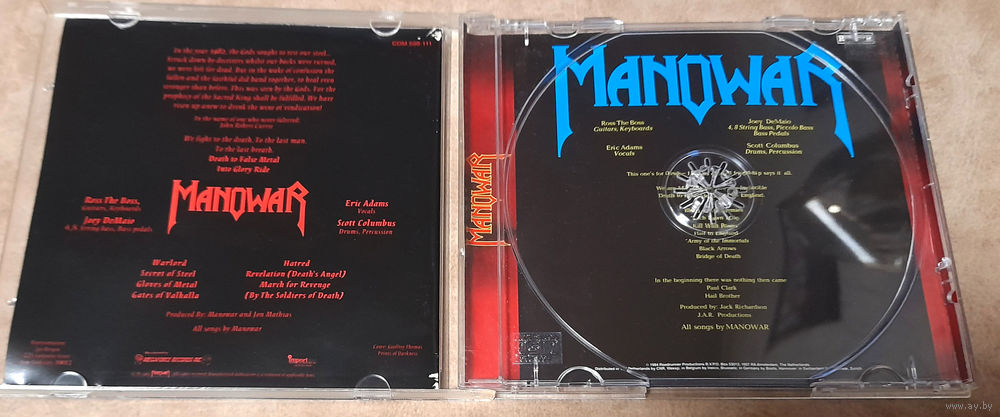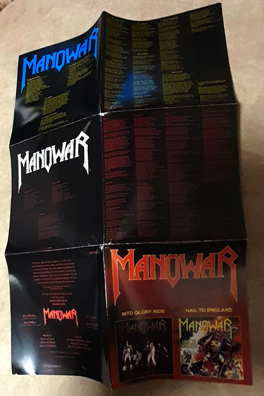 Comes with 12-panels booklet (6 two-side printed panels), which contain songs lyrics and credits \ Manowar poster on flip side.