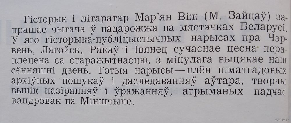 Мар'ян Віж. Чары даўніны: гісторыка-публіцыстычныя нарысы. Мінск : Рэдакцыя газеты "Голас Радзімы". 1989 г. 108 с. Мяккая вокладка. Кішэнны фармат.