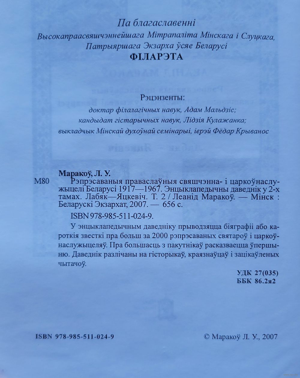 Маракоў Рэпрэсаваныя праваслаўныя свяшчэнна- і царкоўнаслужыцелі Беларусі 1917 - 1967