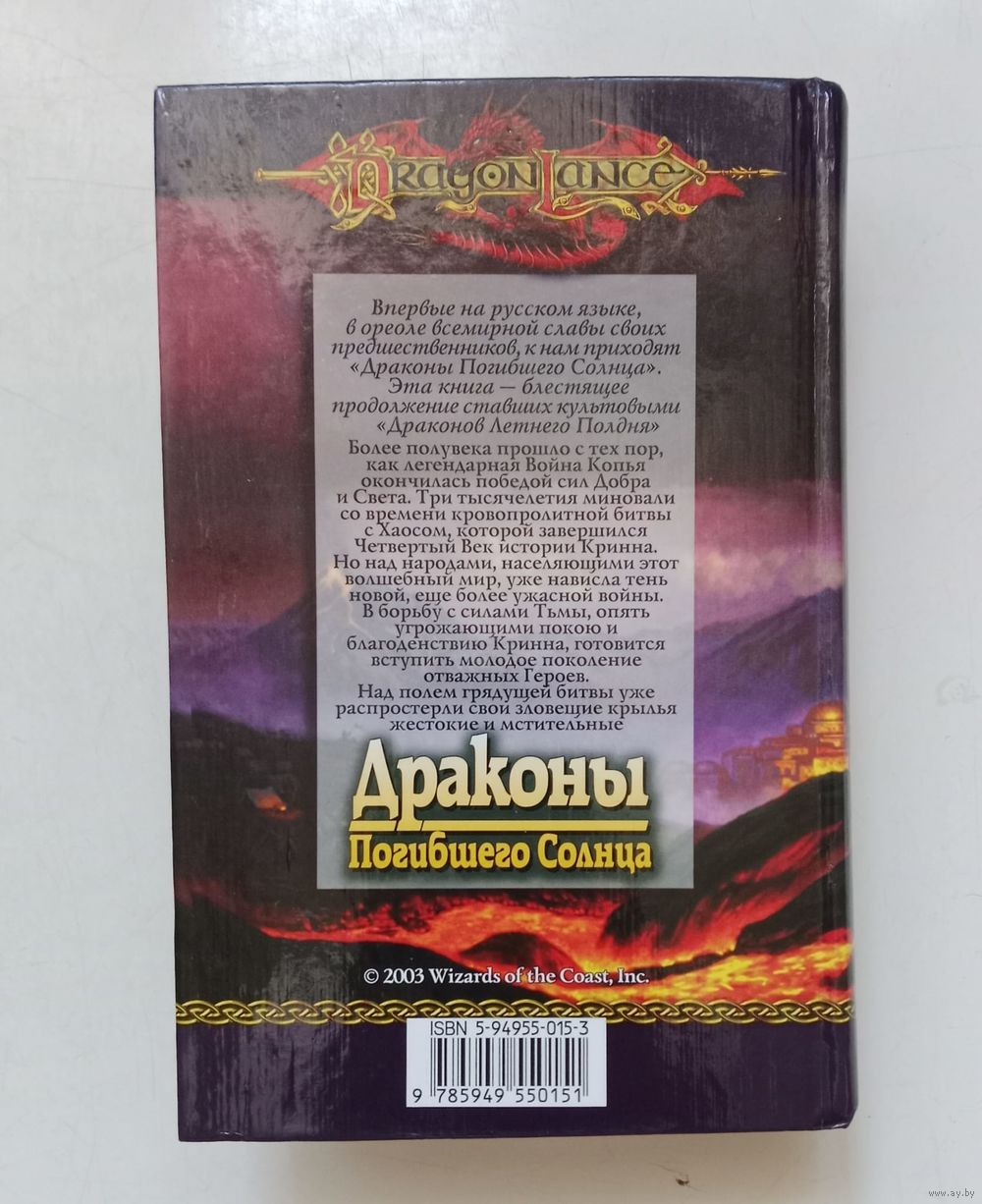Продолжение культового романа "Драконы летнего полдня" из легендарного фэнтезийного цикла DragonLance. Прошло более полувека с момента победы сил Добра и Света в Войне Копья, но над народами мира нависла угроза новой, еще более страшной войны. В борьбу с силами Тьмы вступает новое поколение героев, а над полями сражений распростерли свои крылья жестокие и мстительные Драконы погибшего солнца.