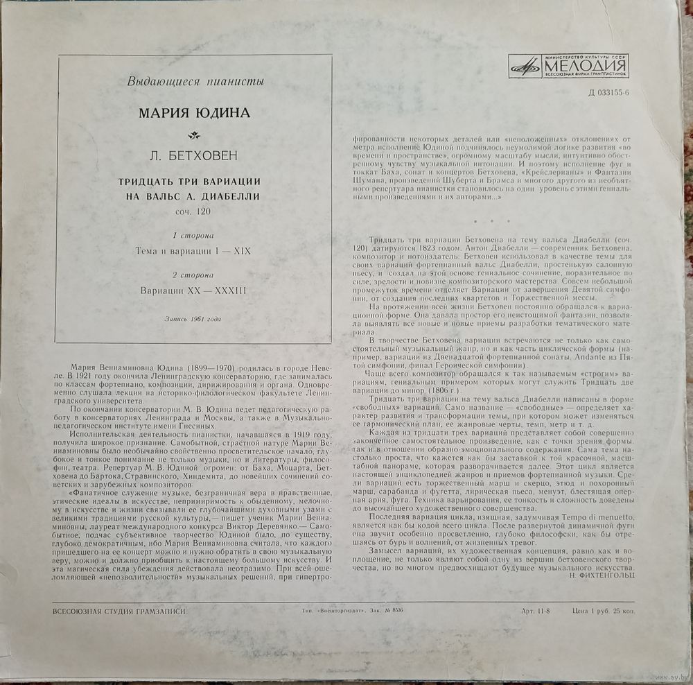 Мария Юдина - Л. Бетховен – Тридцать три вариации на вальс А. Диабелли, Соч. N 120