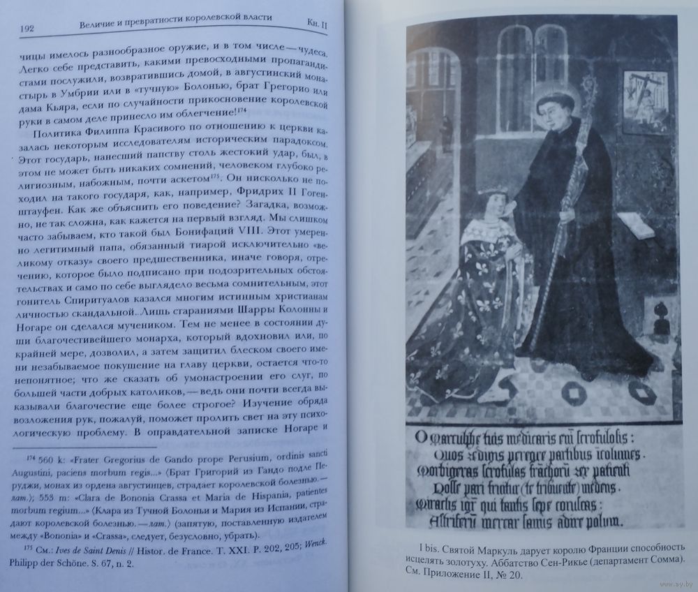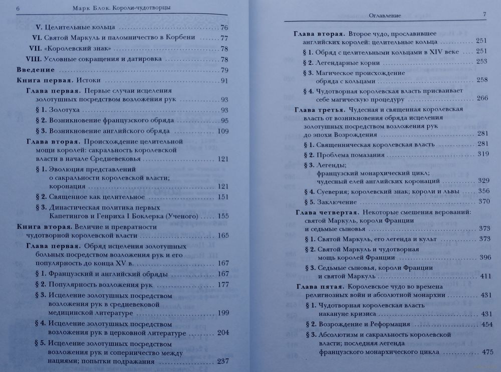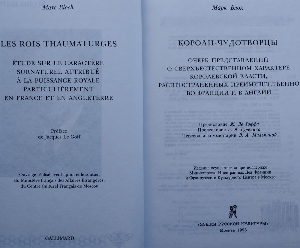 "Пользуясь богословским термином, можно сказать, что Блок изучает феномен чуда апофатически — исследуя все то, что чудом, собственно, не является, хотя и располагается с ним рядом. Его интересуют такие вообще-то профанные факторы, как политический статус двух окраинных государств Европы — Англии и Франции, не входивших в Священную Римскую Империю и не опиравшихся на ее авторитет; соперничество королевской власти с властью церкви, неохотно уступавшей мирянам свою монополию на законное чудо; постепенное утверждение принципа первородства в престолонаследии (целительство является принадлежностью не всего королевского рода, а лишь законного государя); структурная связь обряда возложения рук королем на страждущего с обрядом помазания самого короля при восшествии на престол; разнообразные параллельные верования (целительные кольца, освящавшиеся английскими монархами, культ святого целителя Маркуля, вера в магические способности седьмого сына в семье и т.д.); наконец, постепенный упадок обряда в эпоху абсолютизма, когда короли все менее охотно занимались целительством, не ощущая более нужды в сакральных подпорках для своей власти. Такая фокусировка внимания обусловлена фундаментальной научной стратегией: не пытаться проникнуть в мистическую глубину сакрального феномена, но описывать его извне, показывать его место в обществе." Сергей Зенкин "Марк Блок. Короли-чудотворцы" («Знамя» 1999, №3).