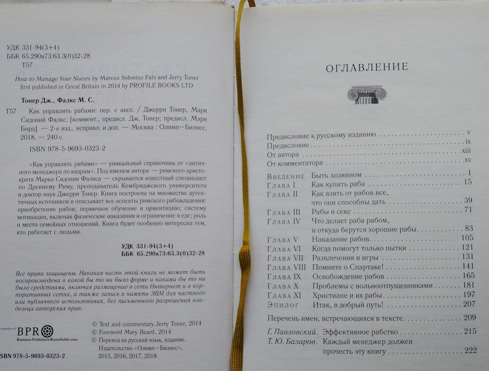 Большой формат. Ляссе. 228 стр. Предисловие Мэри Берд. «Как управлять рабами» — уникальный справочник от античного менеджера по кадрам. Под именем автора — римского аристократа Марка Сидония Фалкса — скрывается известный специалист по Древнему Риму, преподаватель Кембриджского университета и доктор наук Джерри Тонер. Книга построена на множестве аутентичных источников и описывает все аспекты римского рабовладения: приобретение рабов; первичное обучение и ориентацию; систему мотивации, включая физические наказания и ограничение в еде; роль и место семейных отношений. Книга будет особенно интересна тем, кто работает с людьми. Из книги вы узнаете: - почему в основе Римского государства лежало рабовладение; - плюсы и минусы рабовладельческого строя; - как выбрать и купить подходящего раба; - какие качества воспитывать в рабах; - что делать, если рабы бунтуют.