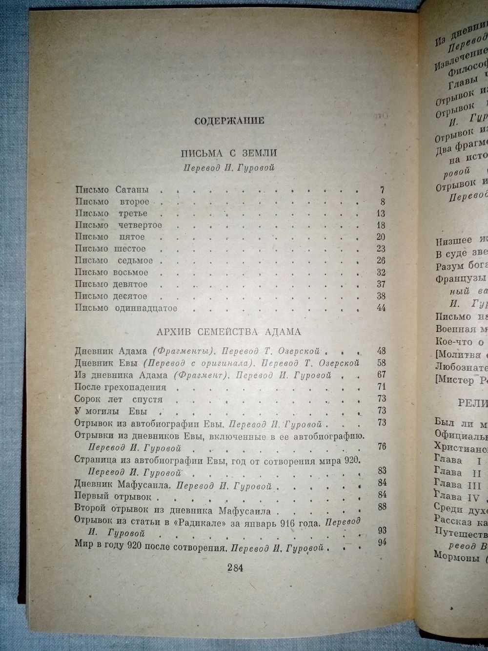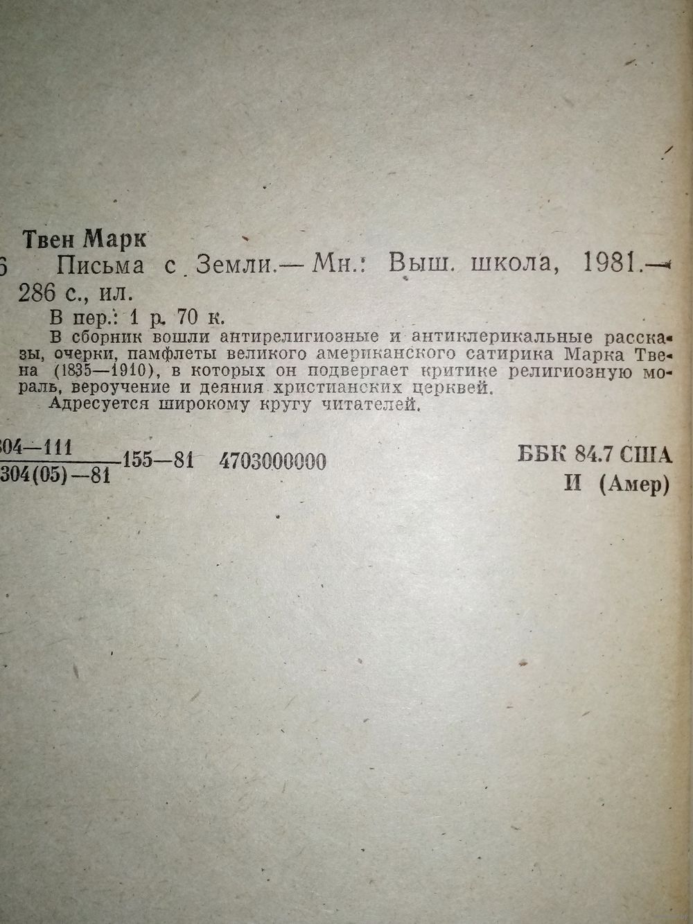 Сборник открывается ярким сатирическим произведением «Письма с Земли», свыше 50 лет остававшимся неизвестным читателям и увидевшим свет только в 1962 г. (Нью-Йорк, 1962). Читатели познакомятся и с другими атеистическими рассказами, очерками, памфлетами писателя, которые характеризуют Марка Твена как убежденного атеиста, непримиримого борца с жестокостью, несправедливостью, лицемерием.