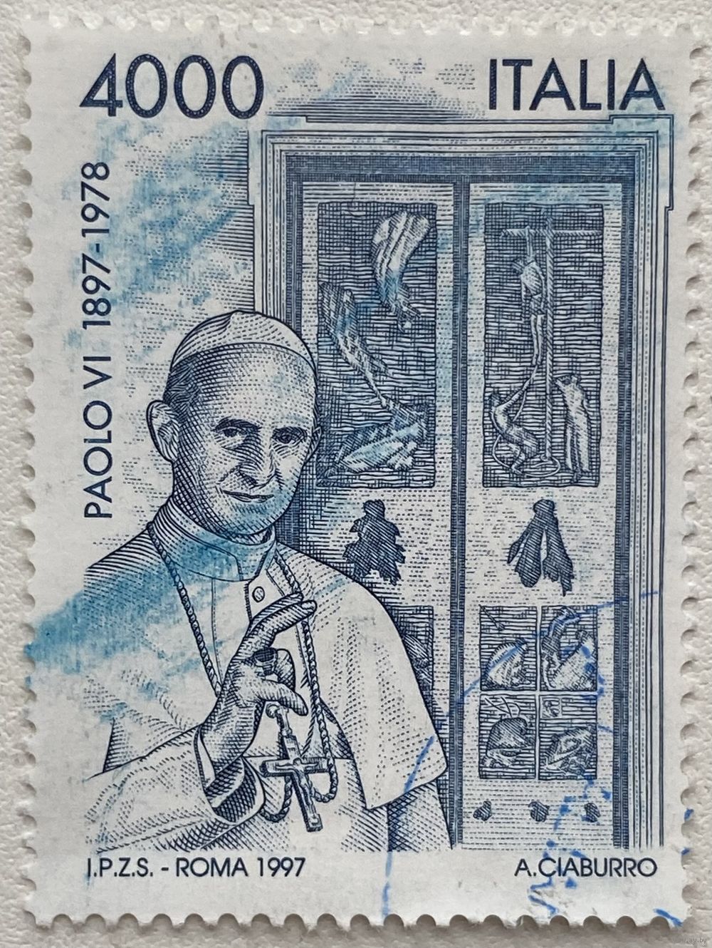 Марка Италии 1997 г. Папа римский Павел VI