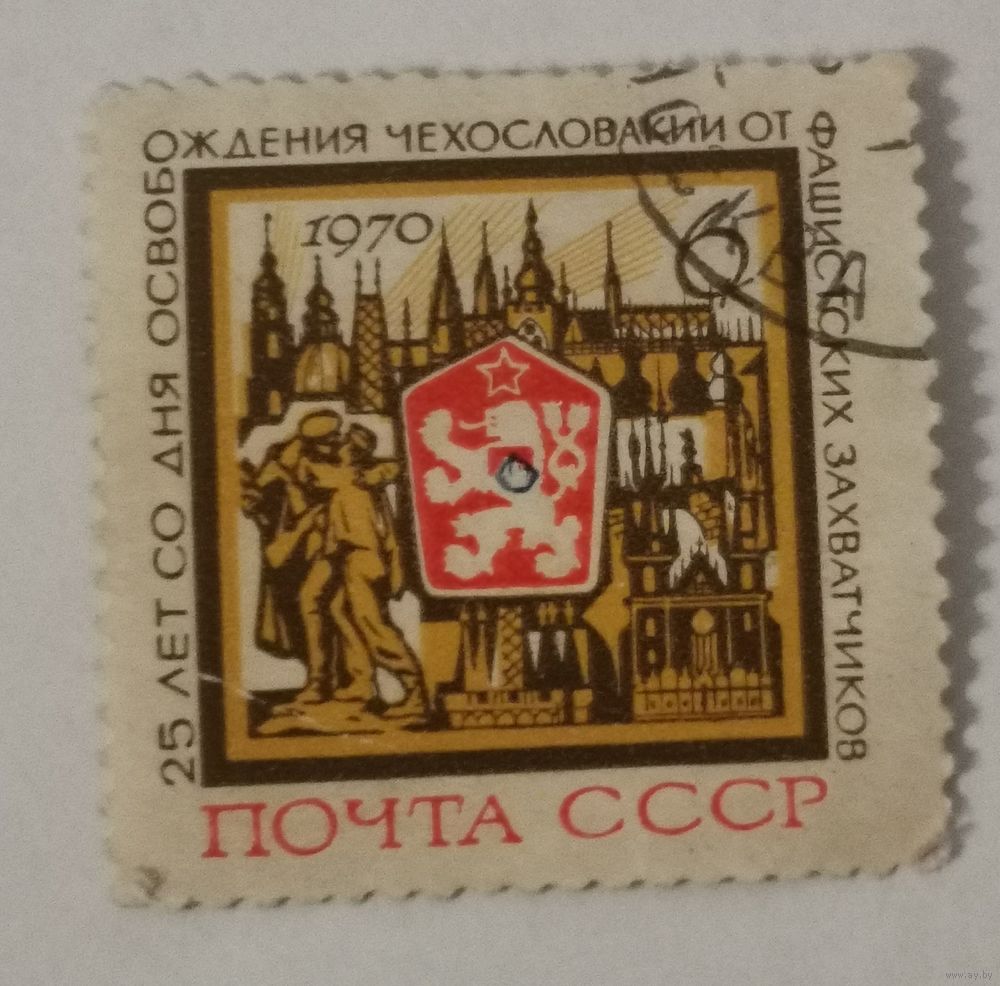 Марка из серии "25-летие освобождения Венгрии и Чехословакии от фашистской оккупации" - Чехословакия